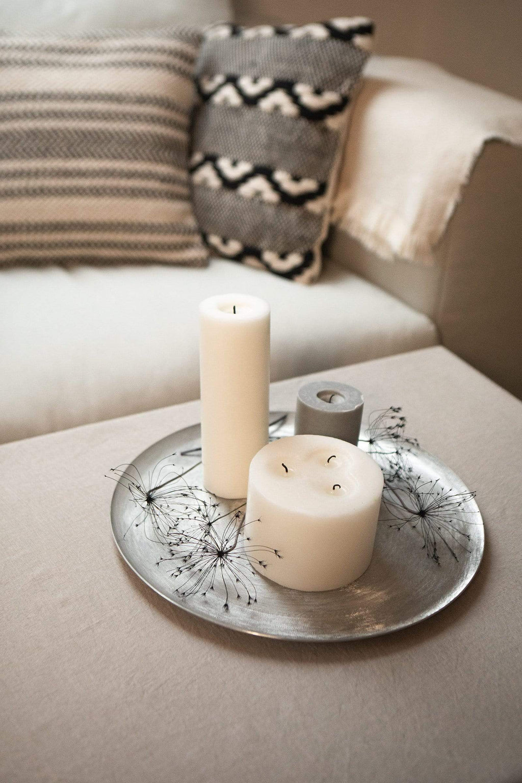 - Das große Tablett Tepsi im gehämmerten Look eignet sich wunderbar als Dekorationsfläche für einen Mix aus Kerzen und kleinen Vasen in verschiedenen Farben.