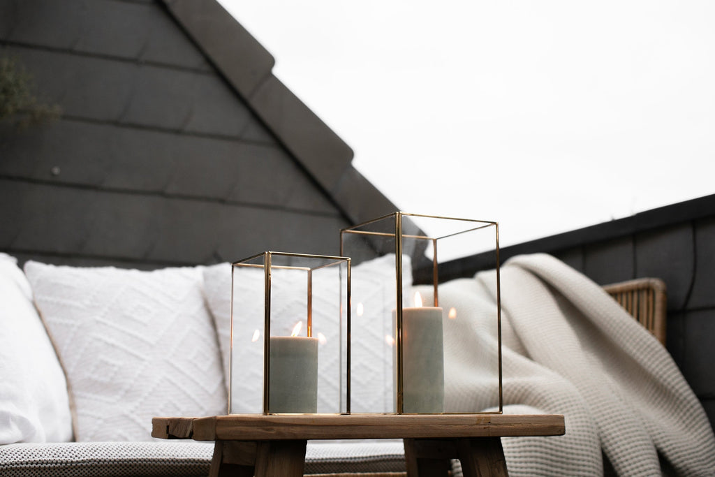 Die goldene Laterne Batu S von LaLe Living sorgt für eine gemütliche Atmosphäre. Ob drinnen oder draußen auf dem Balkon - das Windlicht aus Eisen in Gold bringt Wärme und Licht in Ihre Einrichtung. Kombiniert mit anderen Dekoelementen und Lichtern kann die kalte Jahreszeit kommen! Batu kommt mit einer Größe von 12 x 20 cm und passt damit hervorragend auch auf Tische und Fensterbretter.